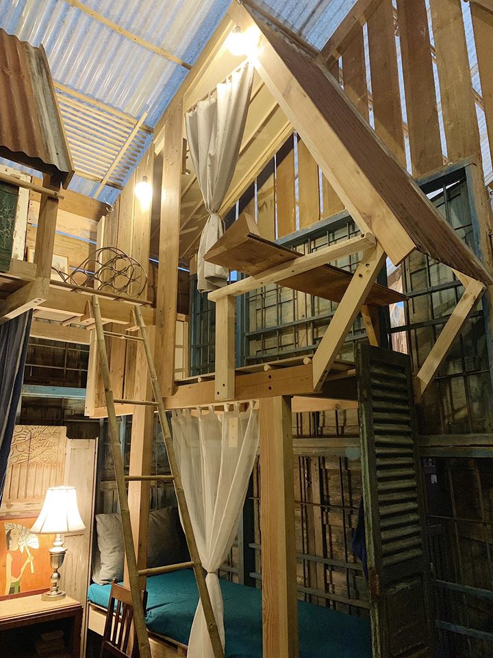 Trong phòng nghỉ hay phía bên ngoài của homestay Tre’s House đều là đồ cũ tái chế, từ những chiếc bàn ghế, tủ, thang gỗ… Điều thú vị là chẳng có món đồ nào giống nhau, do mọi thứ đều được chủ nhân sưu tầm từ nhiều nơi.