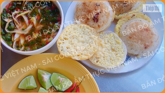 Bột để trong một chiếc nồi nhôm hay xô nhựa, cứ thế đổ bột vào khuôn mà đúc. Khách ngồi lấy sẵn mắm nước hoặc mắm nêm pha, bỏ vào trong đó thêm ít, đợi chiếc bánh còn nóng hổi vừa vớt ra, bỏ ngập trong chén nước mắm, ăn nóng như thế.