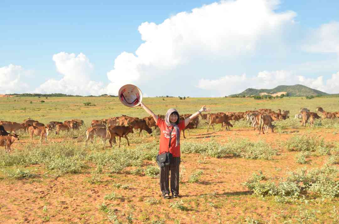 Tôi ráng sức lội bộ theo người chăn bò qua buổi kết bạn sơ giao. Với âm giọng lơ lớ người miền biển, anh kể, gia đình đã sống ở đây lâu đời. Từ nào tới giờ, cư dân quanh đây đều sống chủ yếu dựa vào biển. Sau này, kinh tế khó khăn hơn nên cư dân phải đi dỡ đất trồng cây, có thêm thu nhập. Nhiều người đổi nghề nuôi bò trồng cỏ. Ngoài ra, một số thì chen nhau đi làm công nhân ở khu công nghiệp hoặc ra Mũi Né đi làm thuê.