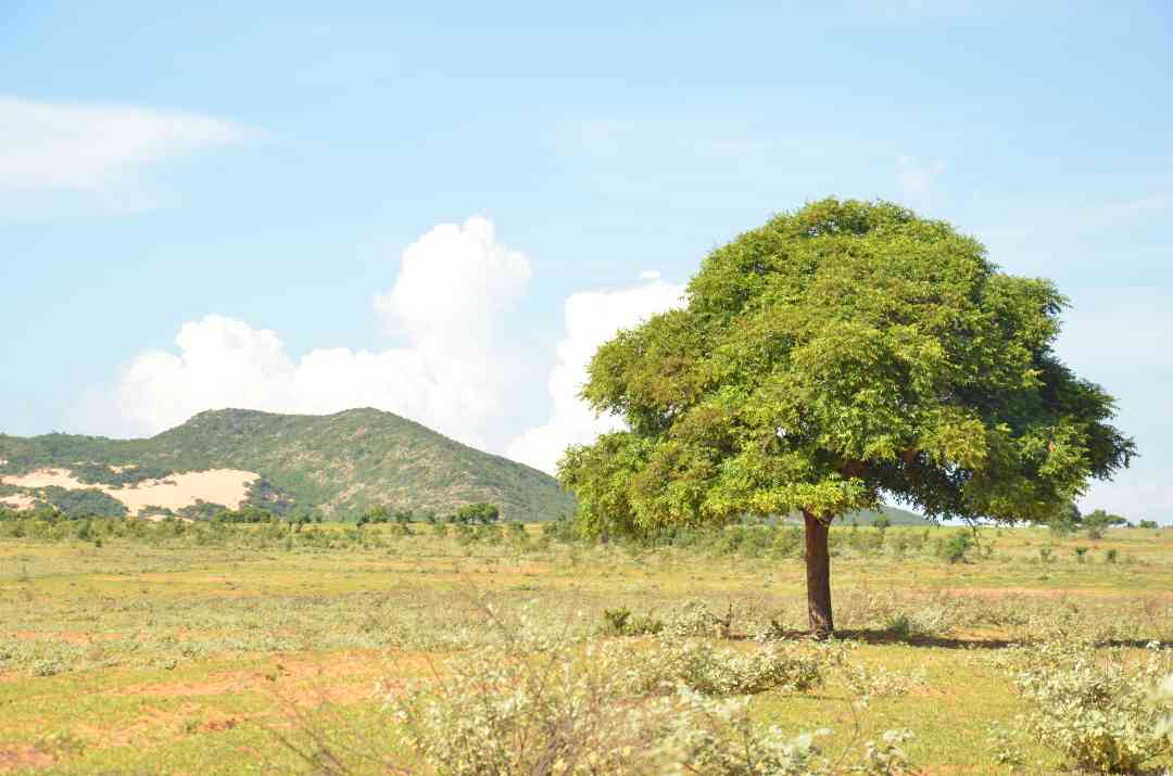 Trên con đường phẳng lì, xe đưa tôi ngao du các di tích du lịch của xã Hòa Thắng, huyện Bắc Bình, Bình Thuận. Trong khung cảnh mênh mang đất trời cây cỏ, điều làm tôi thích nhất là quang cảnh khu vực này vẫn còn vẹn nguyên chưa bị bê tông hóa.