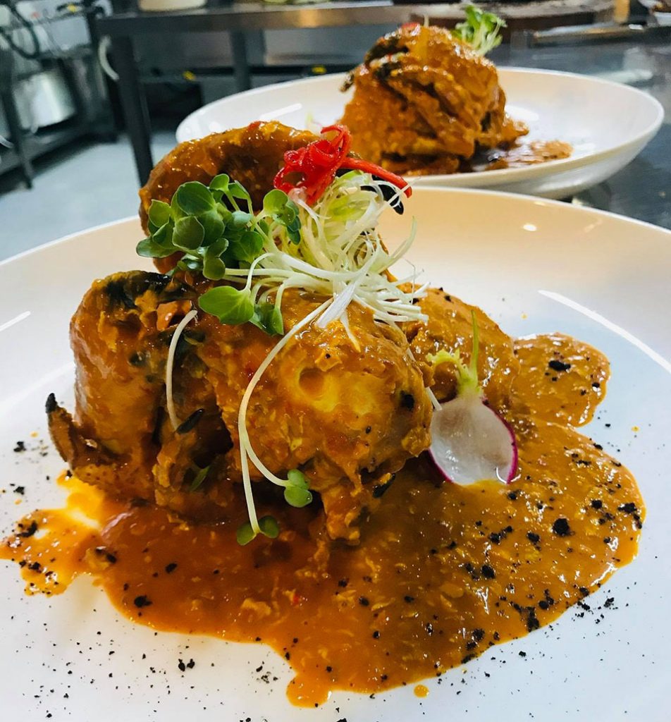 Chưa hết, để tạo nên sự đặc biệt cho món ăn, anh Quí còn ứng dụng cách cắt tỉa thủ công để giúp món ăn thêm đẹp mắt, lôi cuốn thực khách. Đây là lối trang trí theo kiểu Fusion, nghĩa là có sự kết hợp giữa nhiều nền ẩm thực khác nhau trong món ăn.