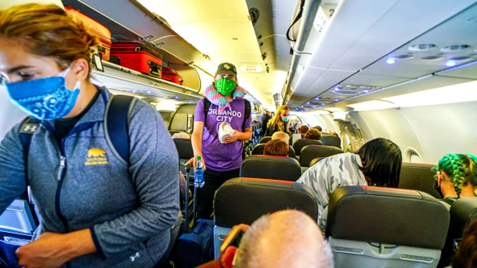 So với thu nhập năm 2019, cũng như ngành vận chuyển đường bộ, ngành vận chuyển hàng không chịu tổn thất khá lớn. Theo dữ liệu của TSA (Cơ quan quản lý an toàn vận chuyển), thu nhập của ngành này giảm mạnh vào giữa tháng 4-2020 (giảm 96%), cải thiện ít nhiều sau đó, giảm còn 70% vào nửa sau mùa hè và vào mùa thu (60%).