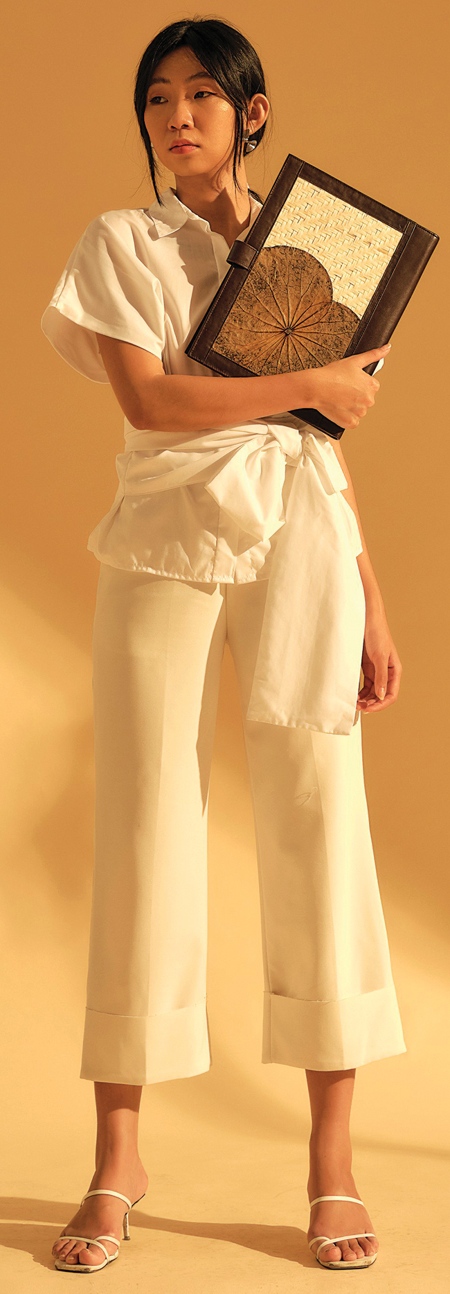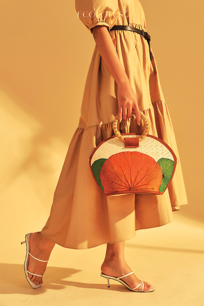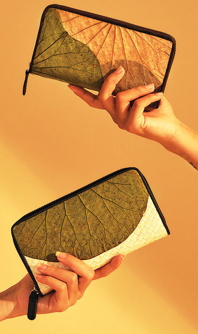 Trên thân túi, ví được trang điểm thêm chiếc lá sen, càng làm tăng sự dễ thương, đáng yêu. Người tiêu dùng xách chiếc túi, ví dường như thấy thoang thoảng mùi tre, nứa, mùi sen – mùi đất, mùi của sự nhớ thương…