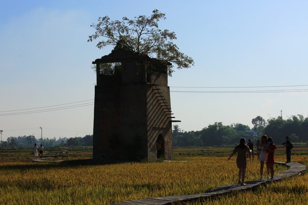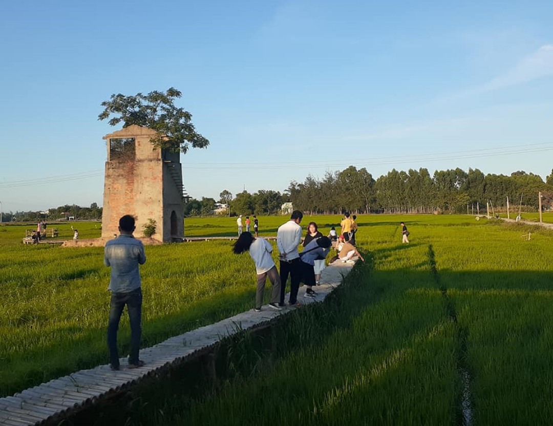 Giữa cánh đồng lúa ba mùa xanh ngắt màu mạ non, hay vàng rực kỳ lúa chín,hàng trăm người tìm đến mỗi ngày để ngắm cảnh và chụp những bức ảnh ở khu vực lò gạch cũ này.