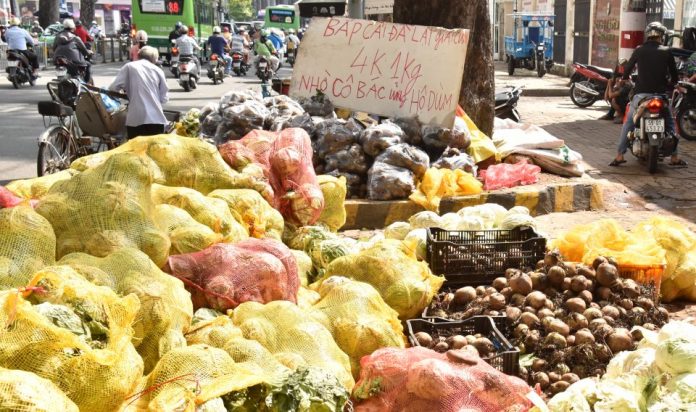 (SGTT) – Sáng nay, ngày 19-4, hơn 9 mét mặt tiền từ số nhà 201 Nguyễn Thị Minh Khai (quận 1, TPHCM) ngập tràn những bao bắp cải từ Đà Lạt đang chờ người mua. Theo những người bán, nơi này đã nhận và hỗ trợ tiêu thụ tổng cộng 140 tấn bắp cải cùng một số loại rau củ khác từ Đà Lạt.