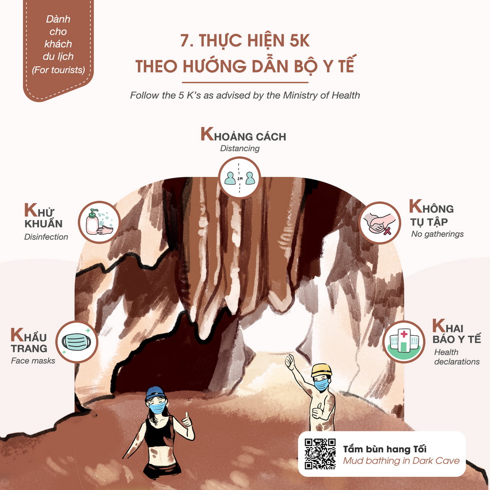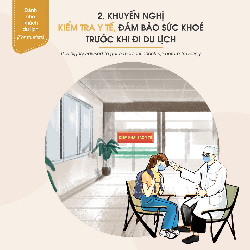 Bên cạnh đó, du khách cũng cần kiểm tra y tế, bảo đảm sức khỏe trước khi đi du lịch; có ý thức bảo vệ bản thân và người xung quanh trong các chuyến đi du lịch; thực hiện 5K theo hướng dẫn của Bộ Y tế.