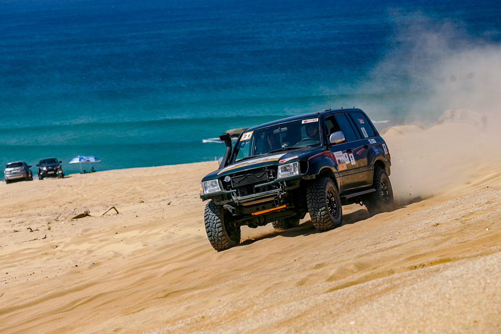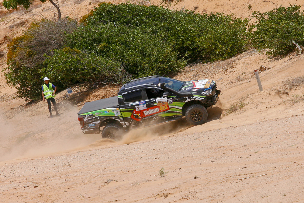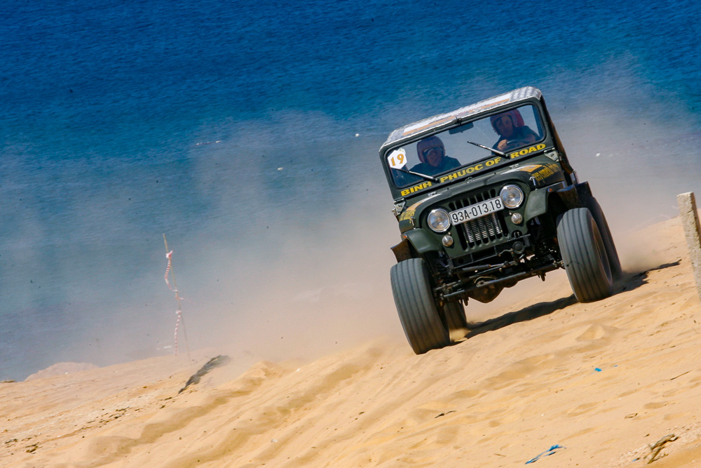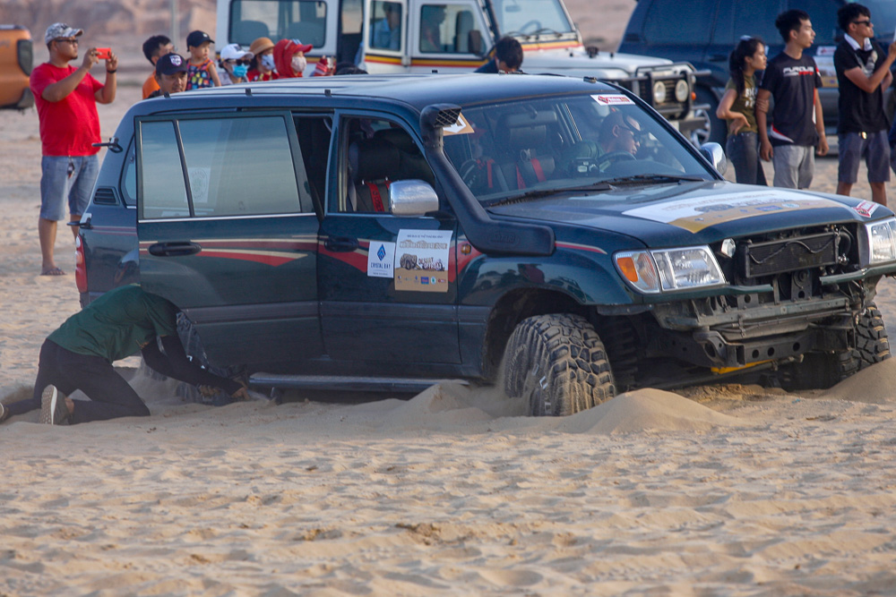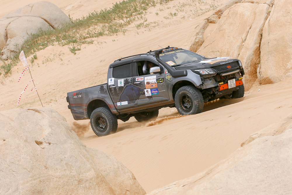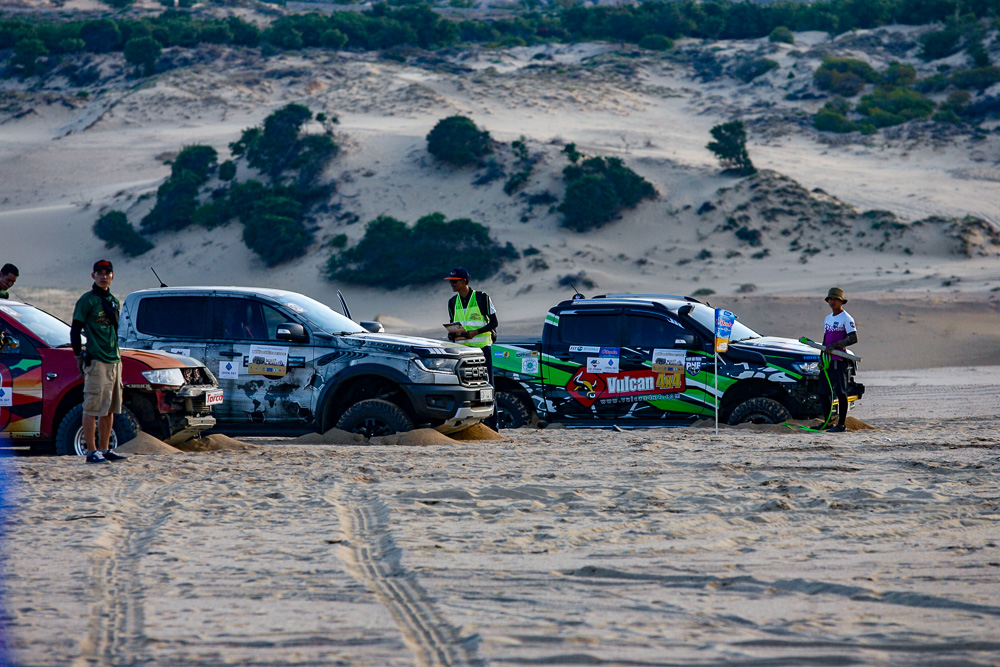 Trong một không gian rộng lớn và địa hình sa mạc kề biển rất độc đáo của khu du lịch Mũi Dinh, hai phân hạng thi đấu Pick Up và SUV lần lượt khởi tranh vào sáng 29-4 vừa qua. Ở phân hạng Pick-Up gồm 22 đội và SUV gồm 12 đội lần lượt chinh phục sáu cung đường thi.