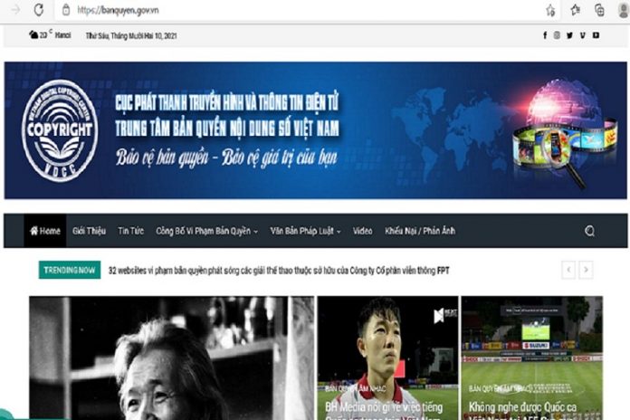 Cục Phát thanh Truyền hình và Thông tin điện tử (Bộ Thông tin và Truyền thông) vừa ra mắt trang thông tin điện tử tổng hợp banquyen.gov.vn và Trung tâm Bản quyền nội dung số Việt Nam nhằm bảo vệ bản quyền cho các nhà sản xuất nội dung phát thanh, truyền hình, thông tin điện tử.
