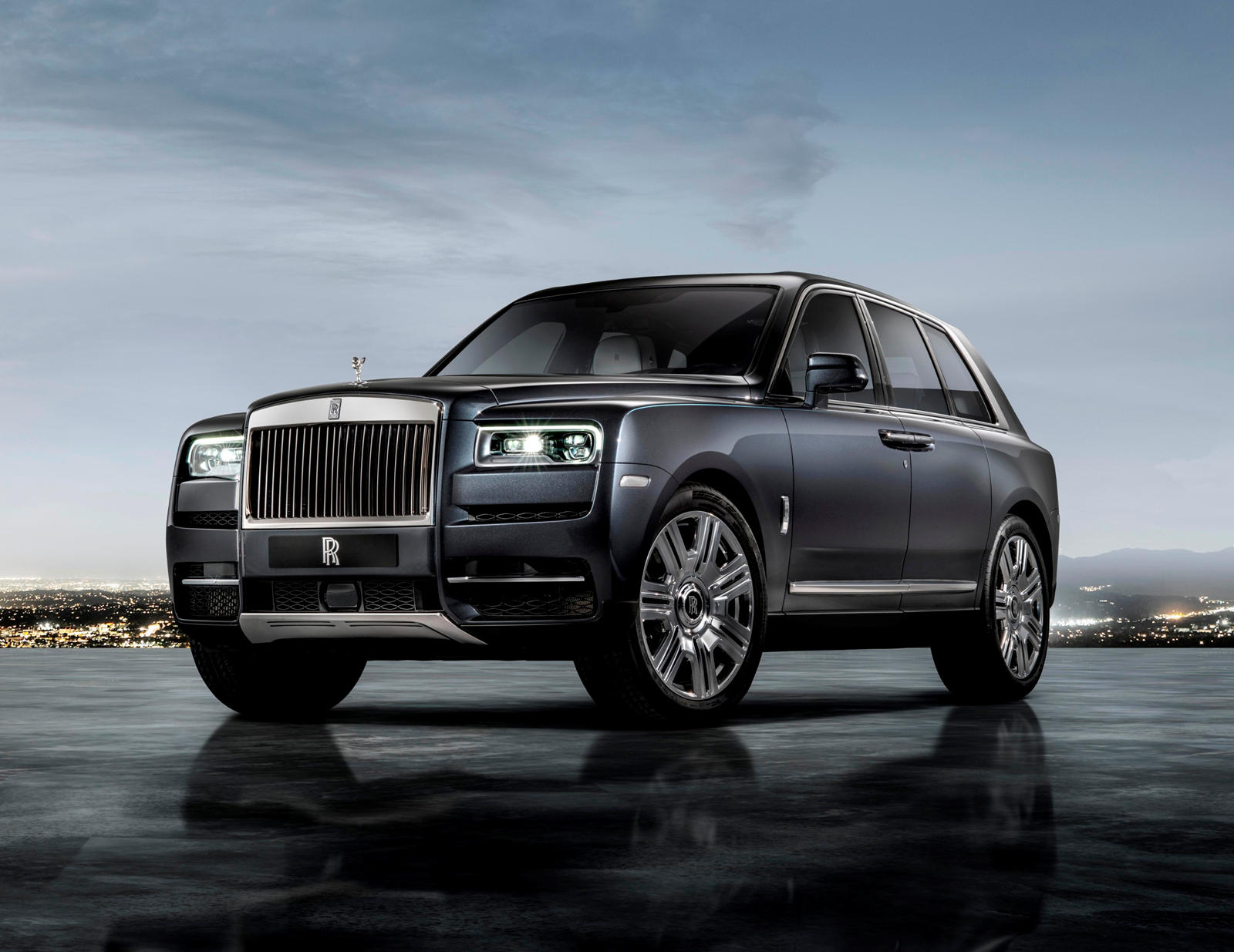 Rolls-Royce Cullinan Ghost Black sở hữu ngoại hình cực ngầu trong màu đen bóng cũng như các yếu tố bên ngoài mạ crôm, bao gồm lưới tản nhiệt phía trước, nắp cốp, cửa hút gió thấp hơn và ống xả cũng được sơn đen.