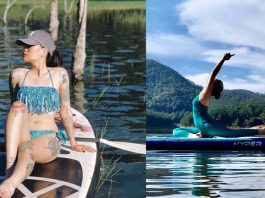 Tập yoga trên mặt nước đón bình minh trên hồ Tuyền Lâm