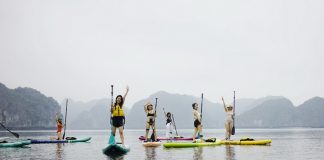 Tập yoga trên mặt nước đón bình minh trên hồ Tuyền Lâm