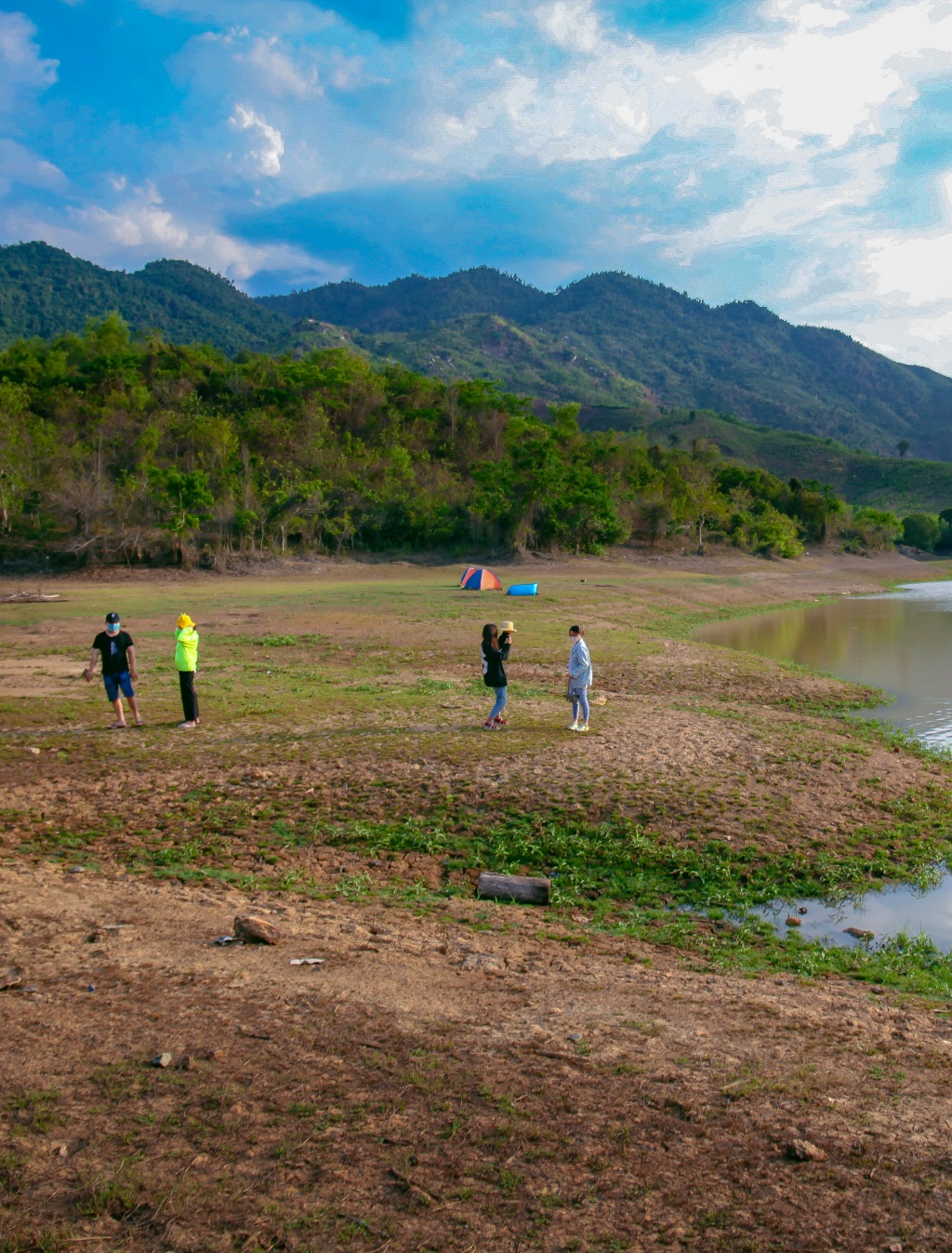 Mỗi người một việc từ nấu ăn, cắm lều trại, chuẩn bị củi để chiều tối đốt lửa trại. Khi hoàng hôn tuyệt đẹp buông xuống, ngồi trong lều cắm trại, chúng tôi thỏa thích ngắm vẻ đẹp thiên nhiên nên thơ của hồ Cây Sung.
