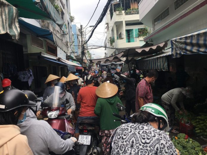 Dù ngày 31-5, Sở Công Thương TPHCM đưa ra thông báo cơ quan quản lý đã chuẩn bị các phương án để cung cấp đủ lương thực, thực phẩm cho người dân thành phố trong giai đoạn giãn cách xã hội. Thế nhưng, tại một số khu chợ trên địa bàn thành phố vẫn bị quá tải bởi lượng người dân đi chợ mua sắm hàng hóa đông đúc. Chưa kể, việc tụ tập đông người còn làm nguy cơ lây nhiễm bệnh tăng cao dù cho ban quản lý chợ thường xuyên nhắc nhở đeo khẩu trang.