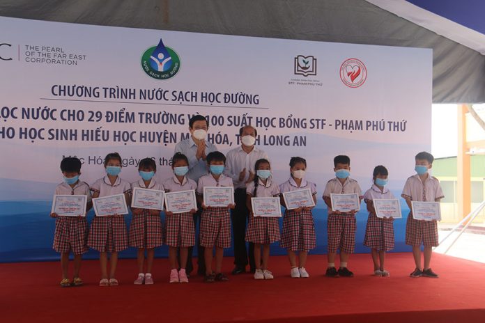 Thấu hiểu thực trạng đó, Hội Bảo trợ Bệnh Nhân nghèo TPHCM, Quỹ Thời báo Kinh tế Sài Gòn (STF), cùng với sự đồng hành của Công ty cổ phần Hòn Ngọc Viễn Đông – PFEC đã phối hợp cùng chính quyền huyện Mộc Hóa trao tặng hệ thống lọc nước và 100 suất học bổng STF-Phạm Phú Thứ cho học sinh hiếu học trên địa bàn huyện.