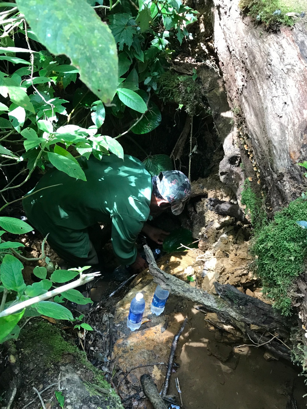 Tiến về phía trước, địa hình lúc lên lúc xuống, chúng tôi đi xuyên qua những cánh rừng già hướng về con suối. Do đường lâu ngày không người đi nên rậm rạp, tốc độ di chuyển không như dự kiến.